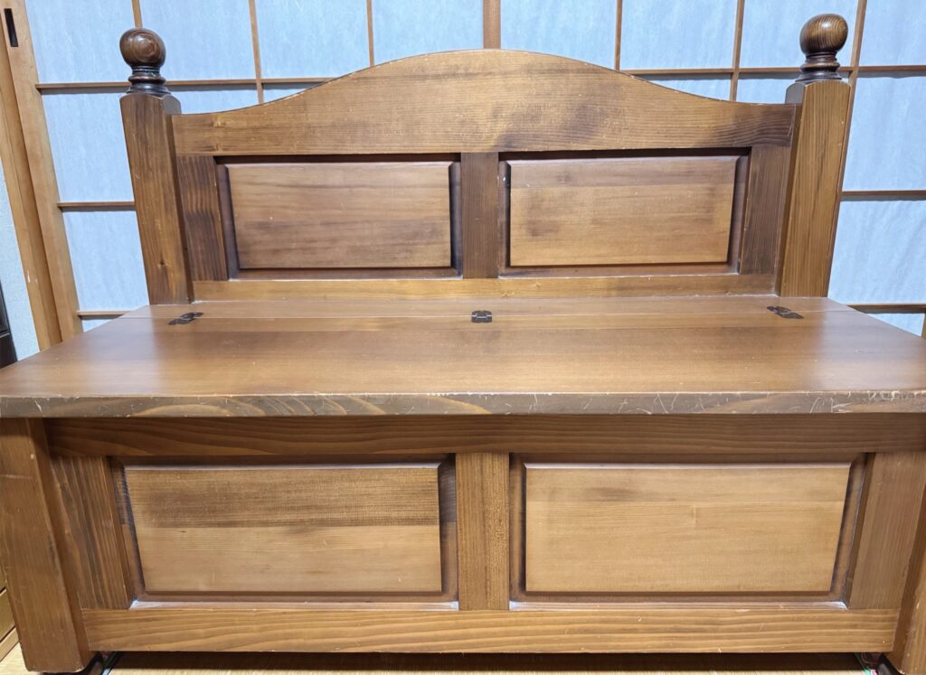 昔ダイニングテーブルとお揃いで買ったけど、狭いリビングにソファーを置いたら邪魔になり、隣の和室に移動させて数年経っている。