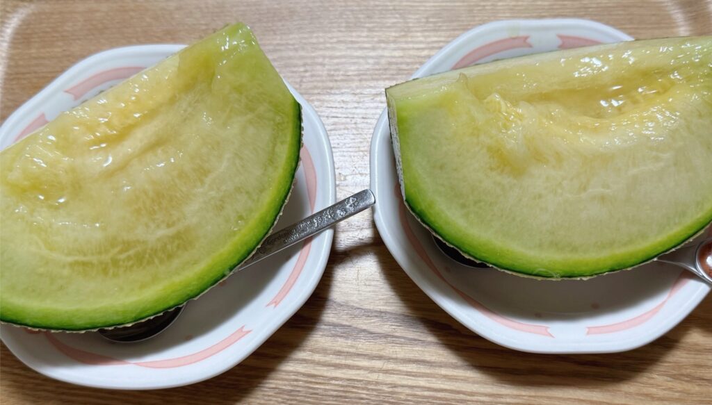 二日連続で1人で4分の1個分のメロンを食べるという贅沢。