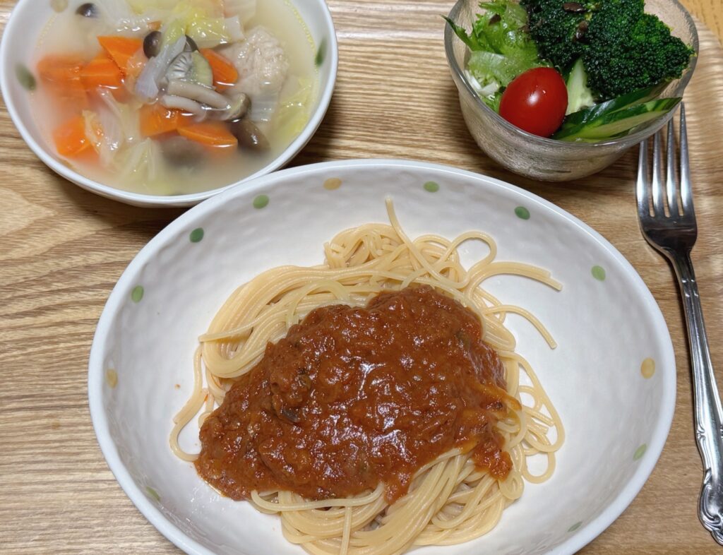 冒頭の写真がそうなんだけど、今日のメニューはパスタにした。