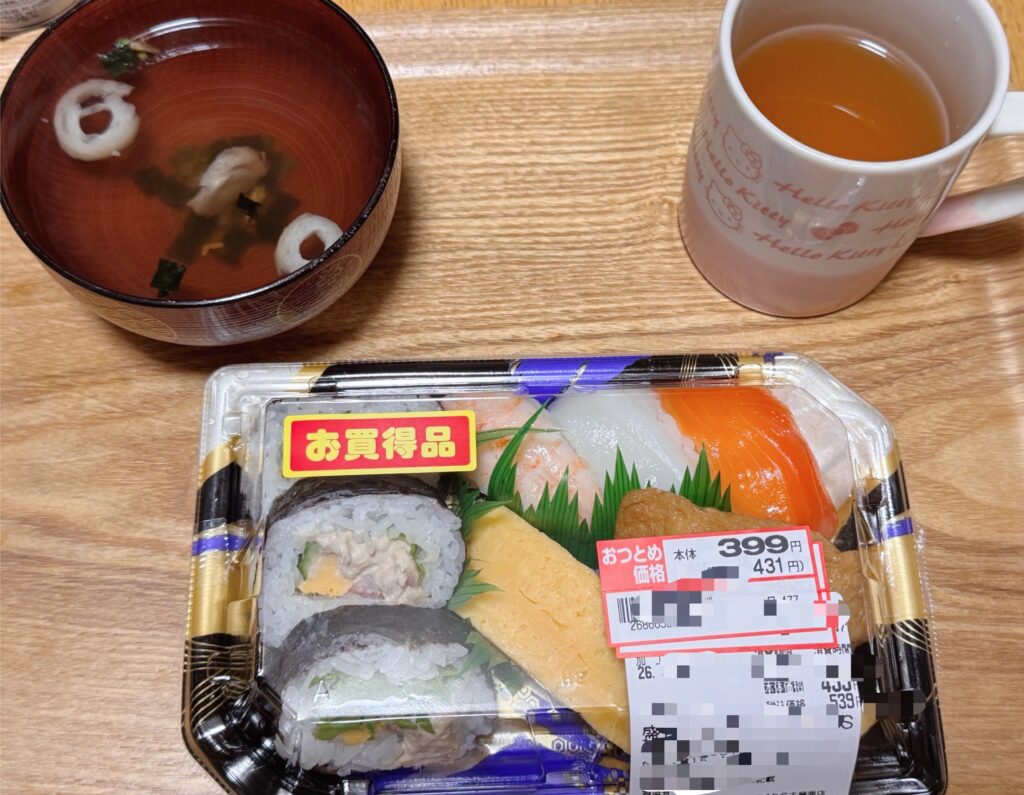 今日の夕食はスーパーのお寿司